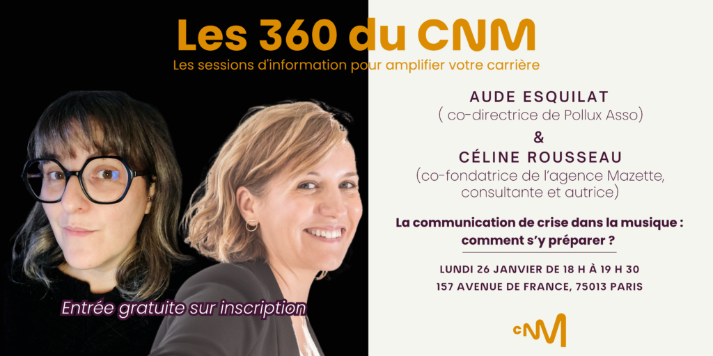 L’atelier sera également l’occasion de découvrir la nouvelle formation Gérer la communication en situation de crise, dont la première session se tiendra au CNM du 16 au 18 mars prochain, pour celles et ceux souhaitant approfondir le sujet.